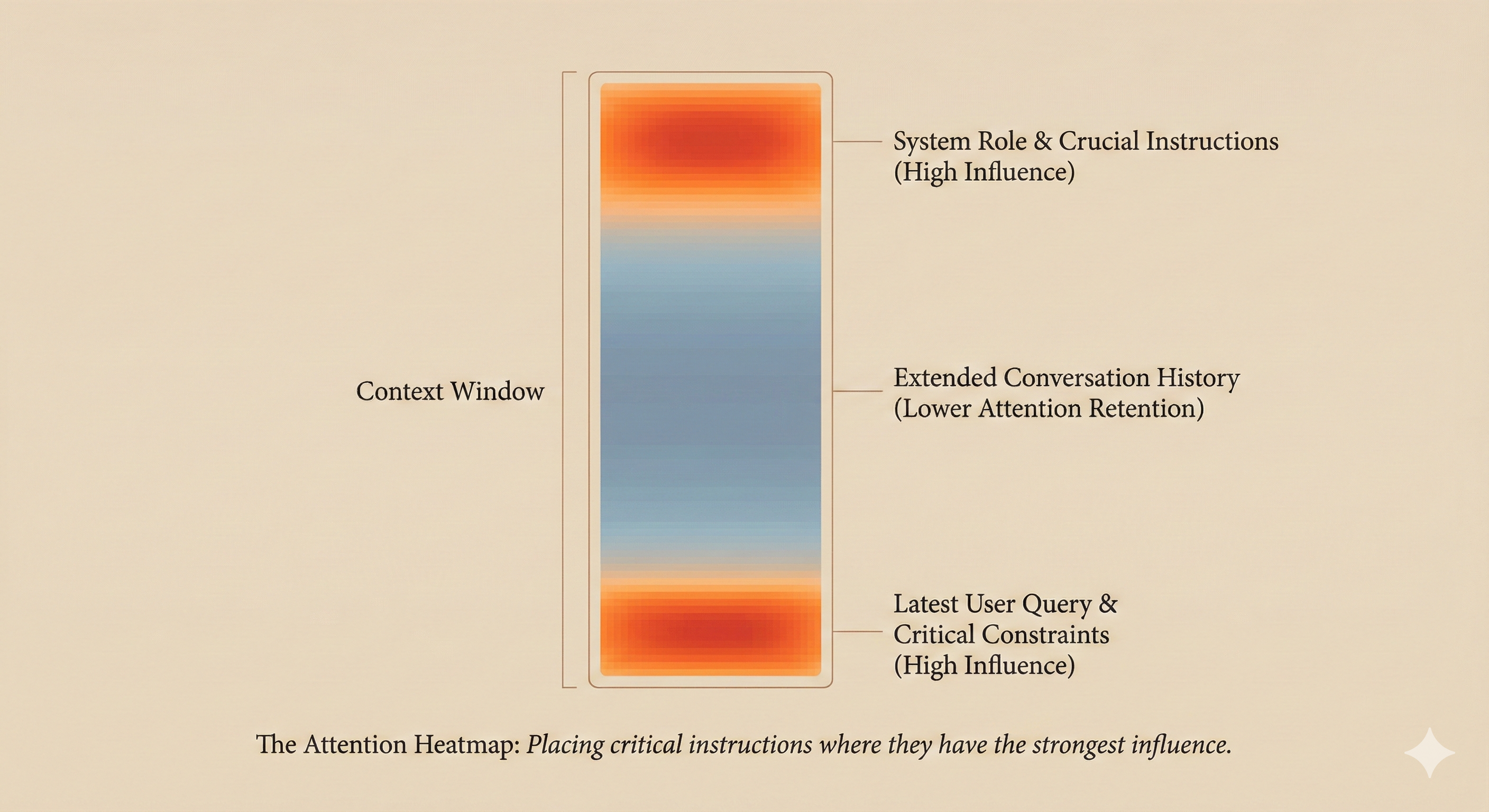 Research shows that models pay more attention to certain positions in the context window. Instructions at the very beginning (system prompt) and very end (near the user query) tend to have the strongest influence.