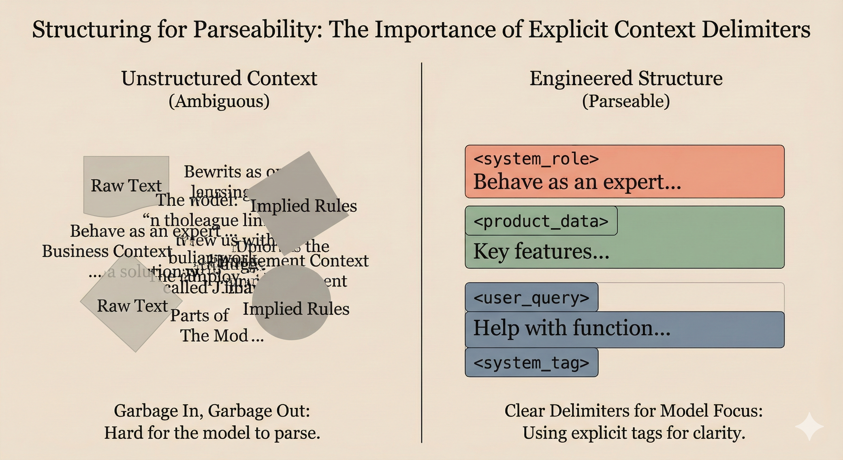 The key insight from OpenAI’s guide: “Use your judgement and think about what will provide clear information and ‘stand out’ to the model. For example, if you’re retrieving documents that contain lots of XML, an XML-based delimiter will likely be less effective.”
